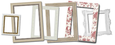 You can also cover your wooden frames, new and older with fabric : old blues or "Toile de Jouy"...