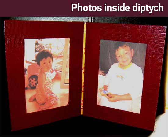 Today, I invite you to make a diptych, i.e. a double photo-frame which is closed with the manner of a wallet and can be posed open upright on a plane surface.