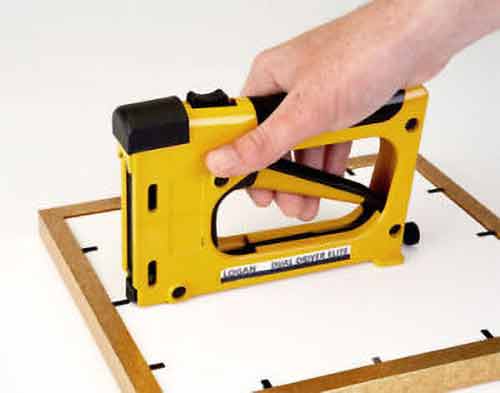 LOGAN has designed a very clever tool (a kind of stapler for the bottom frame) to insert, with no risk of breaking the small spikes or "brad nails" that we use to set the "packet" in its frame.